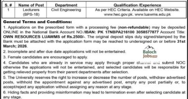 Directorate Of Archaeology and Museums Balochistan Jobs 2026 – Apply Now Looking for balochistan jobs or the latest government jobs in balochistan? A new opportunity has been announced by the Directorate of Archaeology and Museums Balochistan for multiple vacancies across different districts. These government jobs in Balochistan are open for local domicile candidates. If you… Read More »