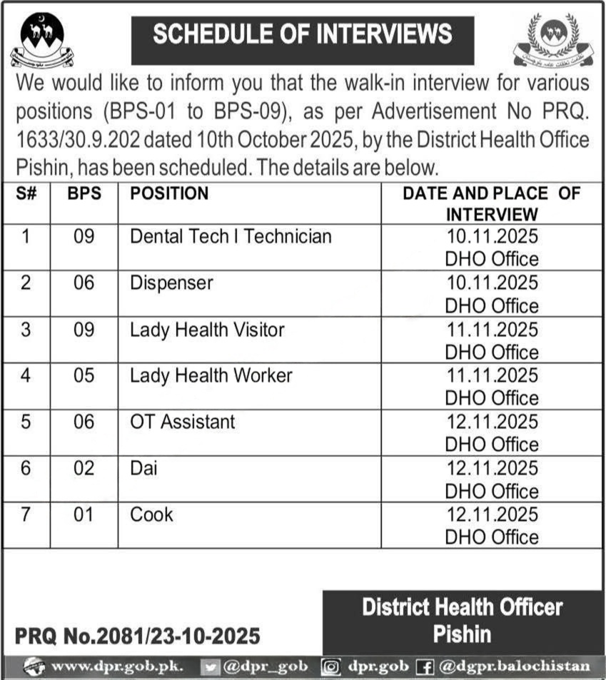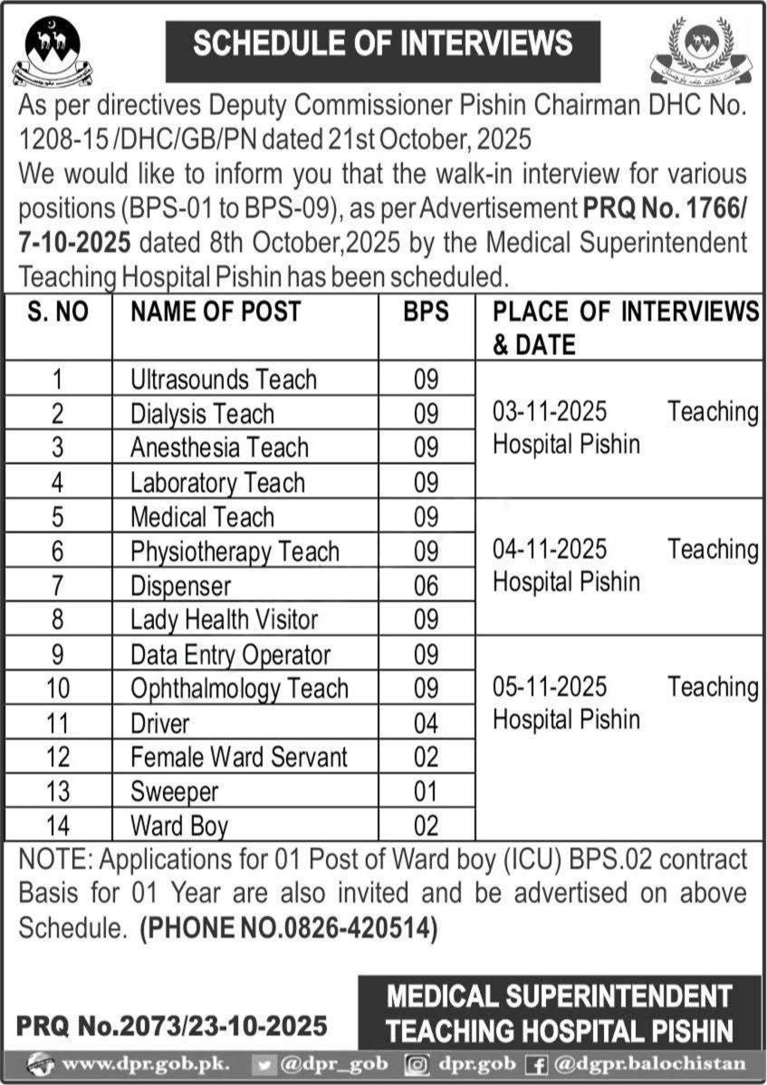 For the District Council Chaghi ad noted above, the expected last date was 14 November 2025 (or as per the newspaper advertisement) for certain posts.